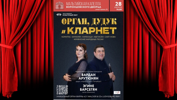 Купон действует на концерт «Исторический орган в Санкт-Петербурге. Орган, дудук и кларнет» (билет номиналом 1500 руб.) (доплата 900 руб. вместо 1500 руб.). Дата и время проведения концерта: 28.06.2025 (суббота) в 14:00.
