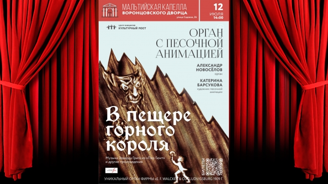 — Скидка 25% на концерт «Орган с песочной анимацией. В пещере горного короля» (номиналом 2100 руб.) (315 руб. + доплата 1260 руб. вместо 2100 руб.)